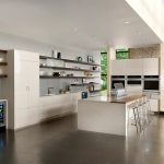 Долната повърхност на отворените конструкции може да бъде оборудвана с лампи, които ще осветяват зоната за готвене. Прожекторите изглеждат страхотно в модерните кухни.
