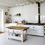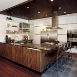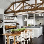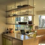 Преди да закупите този дизайн, препоръчително е да проучите техните снимки. Кухня с отворени рафтове, фиксирани към тавана, изглежда по-просторна, така че има смисъл да купувате такива продукти, за да спестите място в малки стаи.