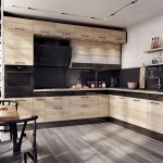 ПДЧ или ПДЧ. Тези материали отстъпват на естественото дърво по своите качества, но освен това са функционални и имат привлекателен външен вид. За да се увеличи експлоатационният живот на конструкцията, се препоръчва закупуване на ламинирани модели рафтове. Осветлението може да се монтира под рафта в кухнята от дърво. Това ще направи кухнята да изглежда по-широка.