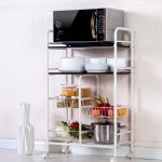 Забележка! Многоетажните конструкции са най-подходящи за съхранение на малки предмети. Препоръчително е да поставите по-големи кухненски прибори на едноетажни рафтове.