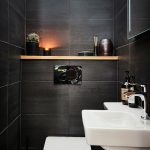 For visuelt at udvide pladsen på et lille toilet kan du gøre bagvæggen helt i en mørk farve. I dette tilfælde skal sidevæggene være lyse og bedst af alt hvide. Der er således en visuel forlængelse af rummet.
