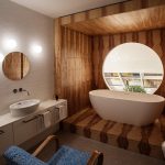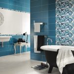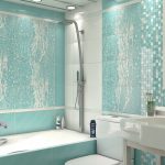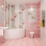 Flise med et billede. Dette er en af de mest populære løsninger til dekoration af et badeværelse. En mere almindelig mulighed er almindelig farvet beklædning. Det bruges både til komplet styling og til dekorering af individuelle indvendige elementer.