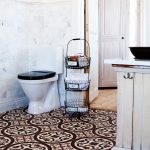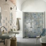 I et kombineret badeværelse ved hjælp af en sådan flise kan du vælge et spejl eller VVS. Mønstrede fliser bruges ofte i kombination med konventionel farvet keramik. Denne løsning er et ret populært flisedesign i små toiletter. Fotos af produkter, der adskiller sig i farve og mønster, kan ses online.