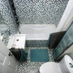 Du kan også bruge flisen til toilettet, som har et ornament. Dette vil skabe hygge i et lille rum. Figurer på fliser kan være monokrome og flerfarvede såvel som spejlet. Det anbefales også at placere dem på bagvæggen.Enhver af disse muligheder kan bruges til et badeværelse i et panelhus.