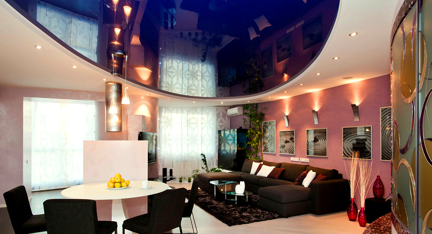 לא משנה באיזו תקרת מתיחה לבחור, בכל מקרה, זה יתברר כדי לתת לחדר מראה מסודר ומושך. לעתים קרובות משתמשים בשילוב של תקרת שווא וקיר גבס, שממלא את התפקיד של מסגור לסרט או לבד. לכן, בעזרת שימוש בתקרות משולבות, ניתן ליצור עיצובים אטרקטיביים.