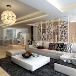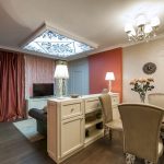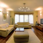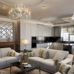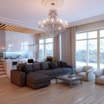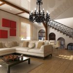 W przestronnych salonach żyrandol można wykorzystać do podziału na strefy. W takim przypadku w każdej strefie możesz umieścić te same opcje produktowe, które nadadzą wnętrzu wykwintnego wyglądu lub połączyć jeden element z innymi źródłami światła w postaci reflektorów lub kinkietów ściennych, które utworzą harmonijny zestaw elementów tego samego stylu.