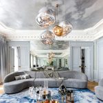 Efektowne żyrandole w salonie w nowoczesnym stylu