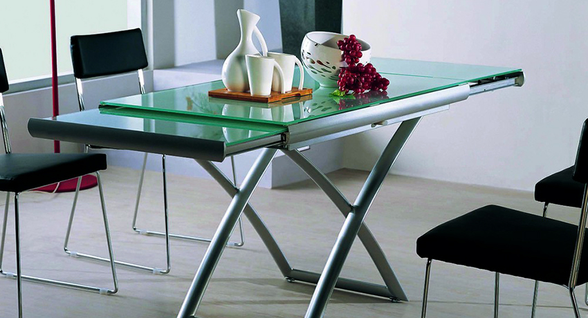 วิธีที่ดีที่สุดในการเปลี่ยนโต๊ะกาแฟเป็นโต๊ะอาหารคือการเปลี่ยนผลิตภัณฑ์โดยการยกท็อปโต๊ะ ดังนั้นโครงสร้างจึงมีความสูงเท่ากับโต๊ะอาหารทั่วไปการติดตั้งกลไกเลื่อนช่วยเพิ่มพื้นผิวโต๊ะ ทำให้โต๊ะกาแฟขนาดเล็กเพิ่มขึ้นเป็นสองเท่า (ความสูงและความยาว)