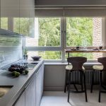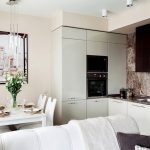 เมื่อเลือกเฟอร์นิเจอร์สำหรับห้องครัวสิ่งสำคัญคือต้องตรงกับความสูงของโต๊ะอาหารและเก้าอี้สำหรับห้องครัว ภาพถ่ายแสดงขนาดมาตรฐานอย่างชัดเจนซึ่งมีตัวบ่งชี้ต่อไปนี้: 75 ซม. - สำหรับโต๊ะและ 40-45 ซม. - สำหรับเก้าอี้