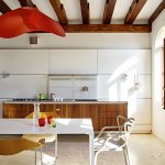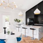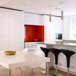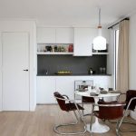 คำแนะนำที่เป็นประโยชน์! โต๊ะและเก้าอี้สั่งทำพิเศษสำหรับห้องครัวจะมีอิทธิพลเหนือการตกแต่งภายในโดยรวมดังนั้นจึงสามารถมีรูปทรงดั้งเดิมและสีที่ตัดกันได้ (สัมพันธ์กับส่วนที่เหลือของการออกแบบ) ตัวอย่างเช่นกลุ่มรับประทานอาหารสีดำสีแดงหรือสีส้มจะดูดีบนพื้นหลังสีขาวพื้นฐาน