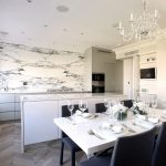 ผู้ที่ชื่นชอบความทันสมัยและความเรียบง่ายจะดีกว่าเมื่อเลือกใช้โทนสีเดียวที่มีโทนสีเดียว ตัวเลือกที่เหมาะสมและหลากหลายสำหรับสไตล์ที่แตกต่างกันเช่นคลาสสิกหรือสมัยใหม่คือโต๊ะรับประทานอาหารสีขาว