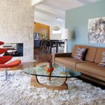 Thiết kế phòng theo phong cách sinh thái liên quan đến việc sử dụng đá cuội đánh bóng hoặc đá cuội màu biển. Một viên đá trang trí trên tường trong phòng khách sau ghế bành hoặc xung quanh lò sưởi trông thật ngoạn mục. Một tấm ốp như vậy sẽ truyền nhiệt tốt nhất của lò sưởi đang hoạt động ra không gian xung quanh. Bạn có thể thay thế một ngọn lửa trực tiếp bằng một lò sưởi điện hoặc một hốc cho nến. Bạn có thể lát đá cả một phần tường và toàn bộ khe hở.