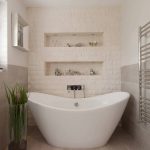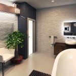 Phòng tắm cũng không ngoại lệ khi sử dụng đá trang trí. Hạn chế duy nhất là không sử dụng vật liệu cấu trúc xốp. Những viên đá này sẽ không hấp thụ hơi nước và độ ẩm. Tốt hơn là chọn một vật liệu bền và không trơn trượt.Đối với phòng tắm, gạch đá phủ men, đồ đá sứ, đá acrylic và polyester là phù hợp nhất. Sàn phòng tắm có thể được làm bằng đá cẩm thạch, loại đá bay hơi nhanh, hoặc lát gạch có hoa văn ván gỗ. Đá phiến phù hợp cho các bức tường. Đừng chọn đá sa thạch. Dưới tác động của hơi ẩm, nó nhanh chóng bị mất màu, trong những phòng tắm nhỏ, bạn không nên phủ hoàn toàn tất cả các bức tường. Điều này sẽ dẫn đến thực tế là ngay cả khi không có điều này, một căn phòng nhỏ sẽ có vẻ nhỏ xíu.