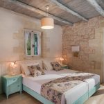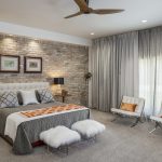 Việc sử dụng đá trong phòng ngủ là cần thiết, vì phòng này cần giữ được ánh sáng, rộng rãi và thoáng mát. Việc ốp từng mảng tường bằng đá tối màu sẽ tạo điểm nhấn tươi sáng cho căn phòng. Màu sắc tự nhiên và kết cấu tạo cho nội thất một nét Địa Trung Hải, mộc mạc và dân tộc.